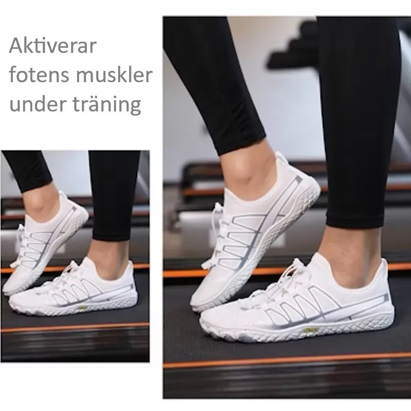 Skorna är utvecklade för att aktivera alla små muskler som vanligtvis inte används i traditionella skor. Resultatet? Starkare fötter, bättre balans och en naturligare rörelse.
